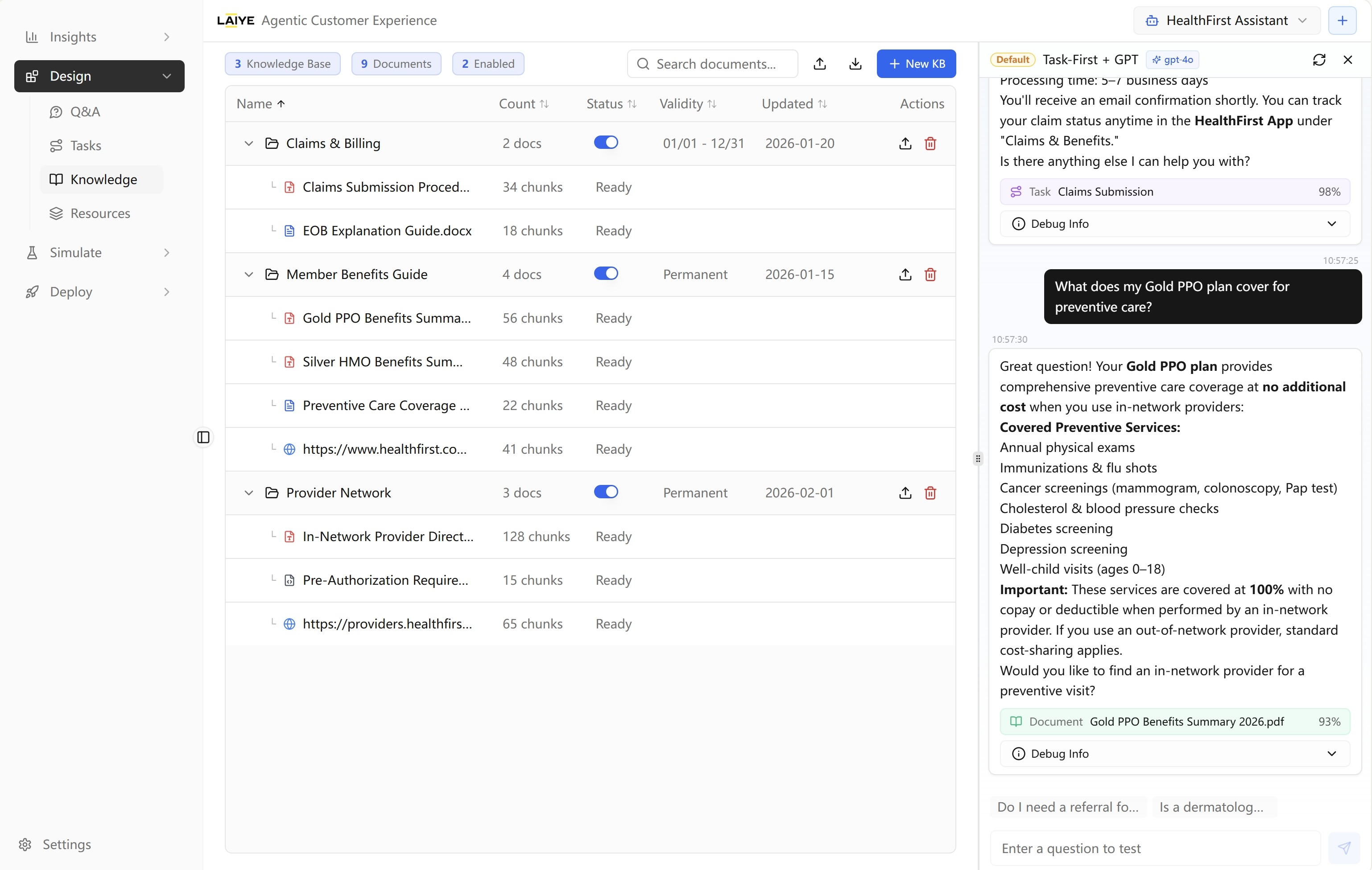 Ingest documents, URLs, plain text, images, and structured data into a unified knowledge layer. Built-in citation analytics track how each piece of knowledge is matched and used, with instant activation — no versioning delays.